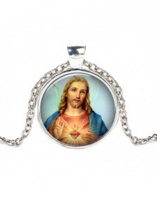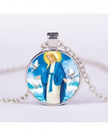 F86 Ezüst Jézus - Keresztény Jézus Krisztus Szűz Mária portré üveg fotó medál nyaklánc
