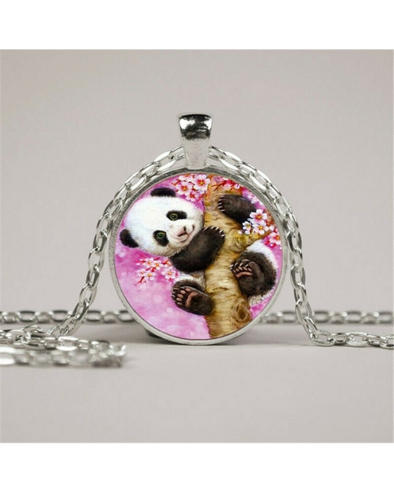Nincs szín - Nyaklánc Baby Panda fotó Tibet ezüst Cabochon üveg medál lánc nyaklánc