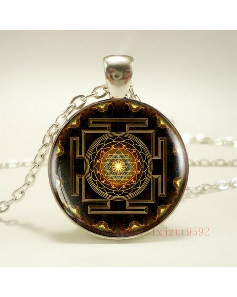Nincs szín - 1db buddhista Sri Yantra Tibet ezüst medál lánc nyaklánc női ékszerekhez