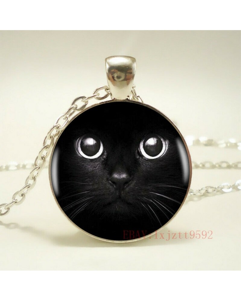 Nincs szín - 1db Black Cat Face Tibet ezüst medállánc nyaklánc Női ékszer ajándék
