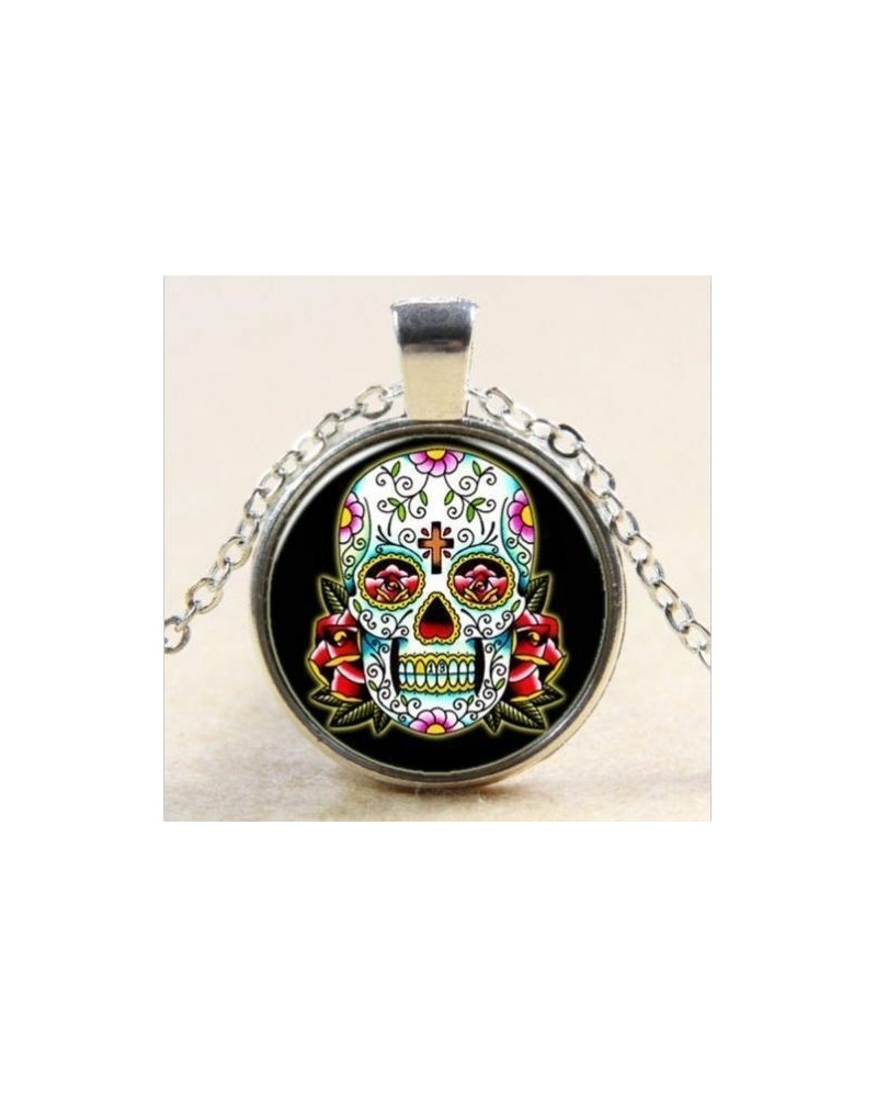 Nincs szín - 2017-es évjárat koponya Cabochon tibeti ezüst üveglánc medál nyaklánc ékszerek