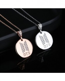 Fém színe: BTS-56-Silver-A - Kpop Charm Fine Chains Nyaklánc Kerek Márka Medál Cirkon Nyaklánc 2021 New Bangtan Boys