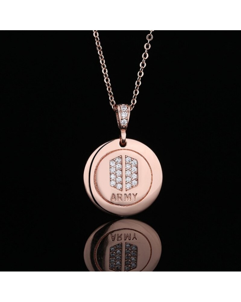 Fém színe: BTS-566-Rose Gold-A - Kpop Charm Fine Chains Nyaklánc Kerek Márka Medál Cirkon Nyaklánc 2021 New Bangtan Boys