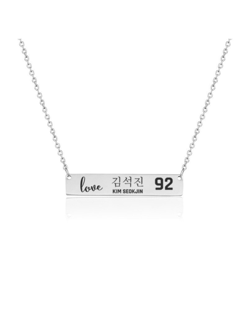 Fém színe: KIM SEOKJIM - Kpop rozsdamentes acél geometriai téglalap JIMIN rajongói nyaklánc a női trendhez 2021 Édes