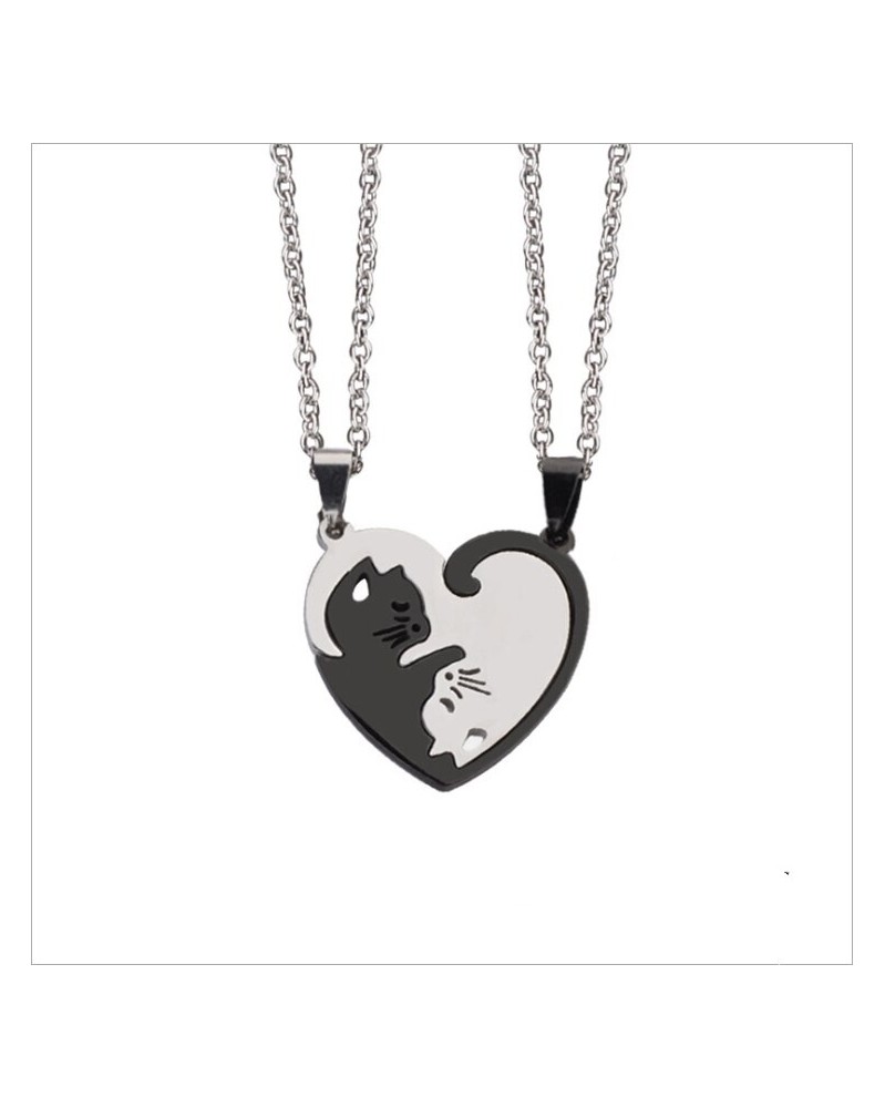 Fém színe: BTS-669 B 1pár - BTS-669 rozsdamentes acél ölelés macska varrás medál nyaklánc 2020 új szív pár nyaklánc