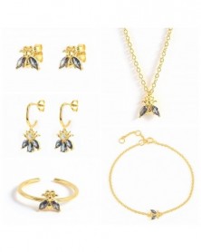 Viny Black Color Zirconium Bee Pearl Inlaid Diamond Earrings For Women 925 Sterling Silver Earrings Rings Necklace Bracelet