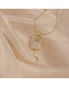 Kreatív mikroberakásos CZ zár és kulcsnyaklánc nőknek 14K valódi aranyból, gyönyörű AAA cirkónium -dioxid kolye
