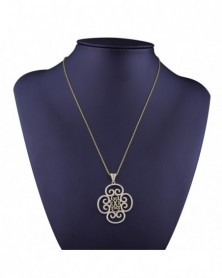 JUWANG Hollow Chinese Knot Flower Cubic Zirconia Charms Necklaces Gold Color Micro Pave Zircon Necklace Gift Fashion Jewellery