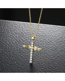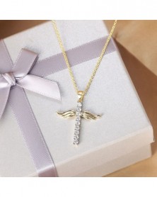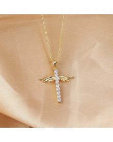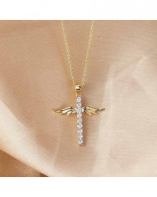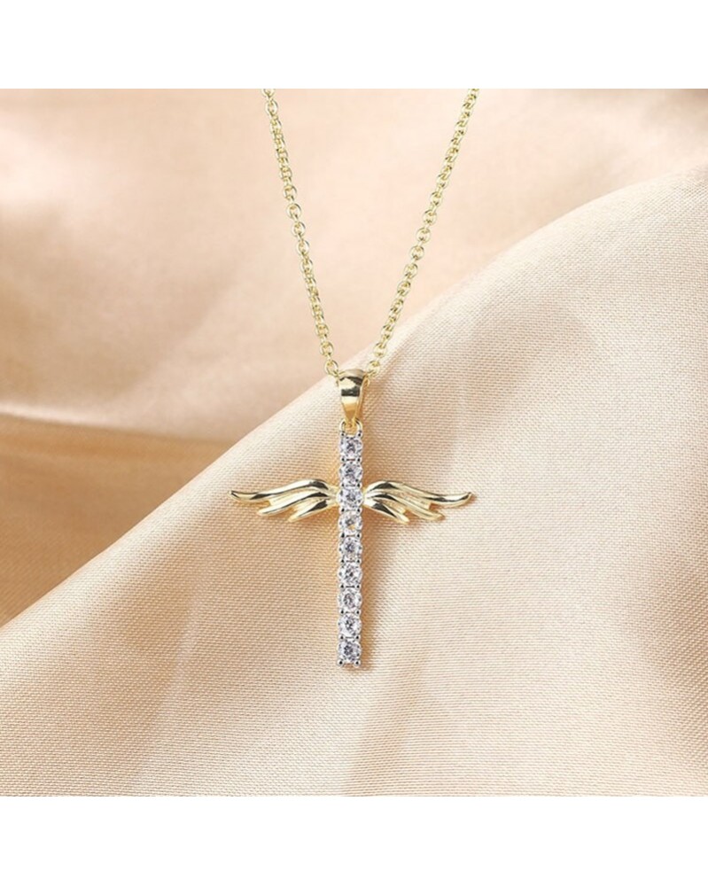 JUWANG forró eladó szög szárny kereszt keresztény ima nyaklánc Unisex réz bevonatú arany cirkónium gallér pofa