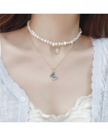 Romantic Cute Imitation Pearl Short Necklace Choker Temperament Micro Inlaid Zirconia Blue Butterfly Necklaces Charm Collier
