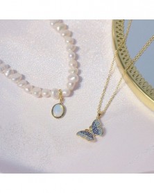 Romantikus aranyos utánzat gyöngy rövid nyaklánc Choker temperamentum mikroberakott cirkónium kék pillangó nyaklánc