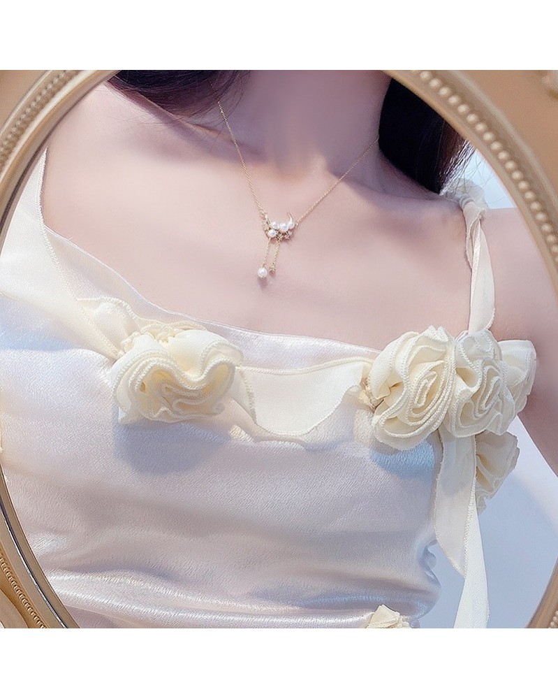 Korean New Arrive 14K Real Gold Moon Pearl Necklace Micro Inlaid AAA Zircon Tassel Kolye Bohemia Jewellery Pendant Birthday Gift