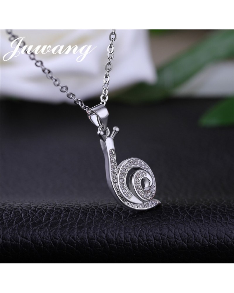 JUWANG Fashion Snails Necklaces for Women Luxury Bling Pave Zircon Stainless Cute Bijoux Colar Trendy Lady Jewellery Birthday Gift