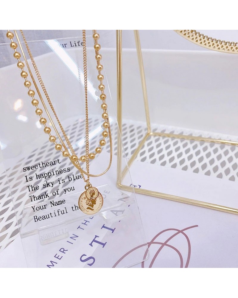 Vintage medál nyaklánc luxus K arany többrétegű királynő avatar gyönyörű luxus lánc fókusz három készlet