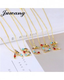 JUWANG Multicolor Gold 26 Alphabet Pendant Necklace Charm Micro Pave Zircon Initial Letter Necklaces Couple Name Necklace