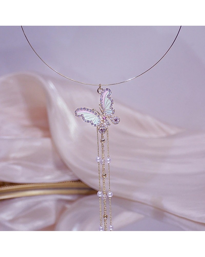 Ins Forró akció Színes cirkóni pillangó nyaklánc nőknek hosszú tervezésű bojt Pearl Choker nyomatékok esküvő 14k