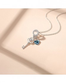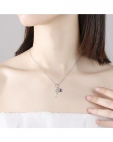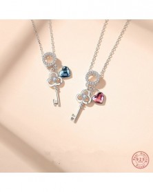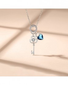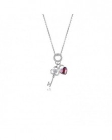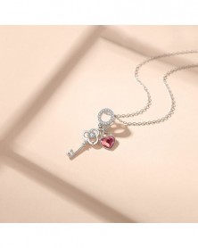 Drágakő színe: rózsaszín kristály - 925 ezüst egyszerű " TE vagy a kulcsom" kulcs szív medál kulcscsont lánc