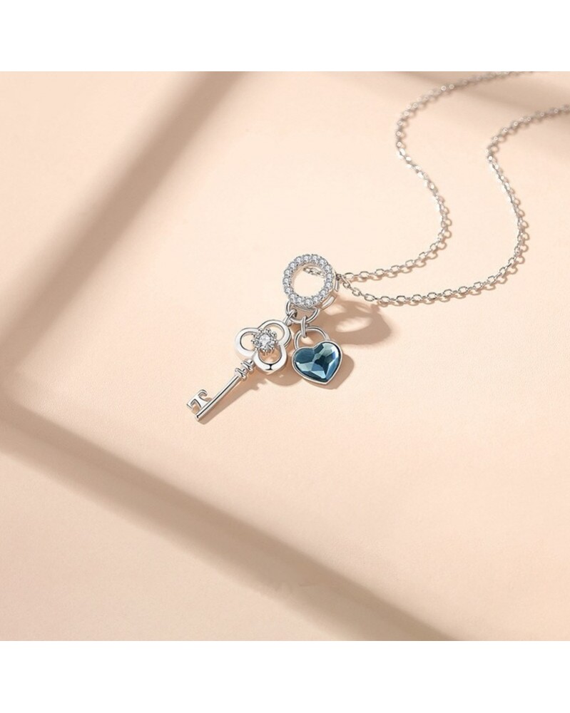 Drágakő színe: kék kristály - 925 ezüst egyszerű " TE vagy a kulcsom" kulcs szív medál kulcscsont lánc