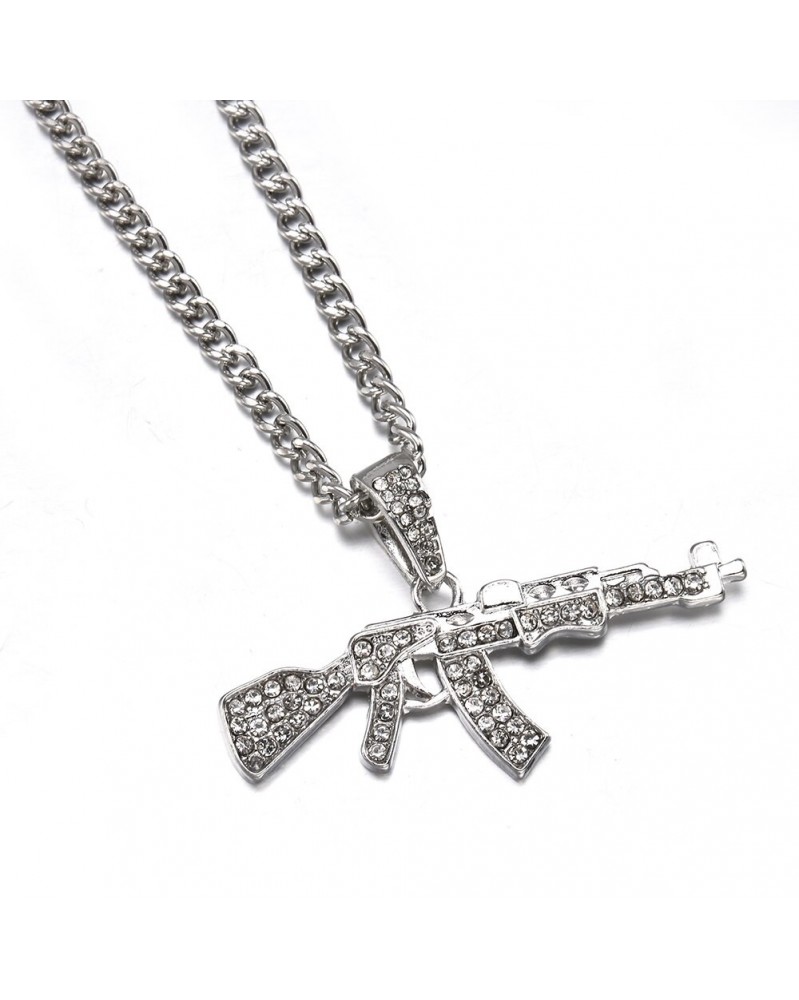 Fém színe: MC068 - Divat Choker nyakláncok nőknek 2020 pisztoly függő kristály strasszos lánc nyaklánc nők férfiak