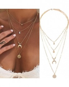 Fém színe: N934 - Divat függő nyaklánc arany színű bohém női kétrétegű nyakék retro arany arany faragott érme
