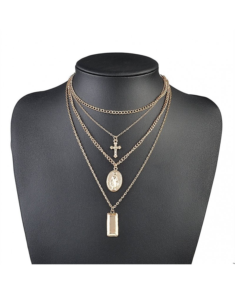 Fém színe: MA581 - Divat függő nyaklánc arany színű bohém női kétrétegű nyakék retro arany arany faragott érme