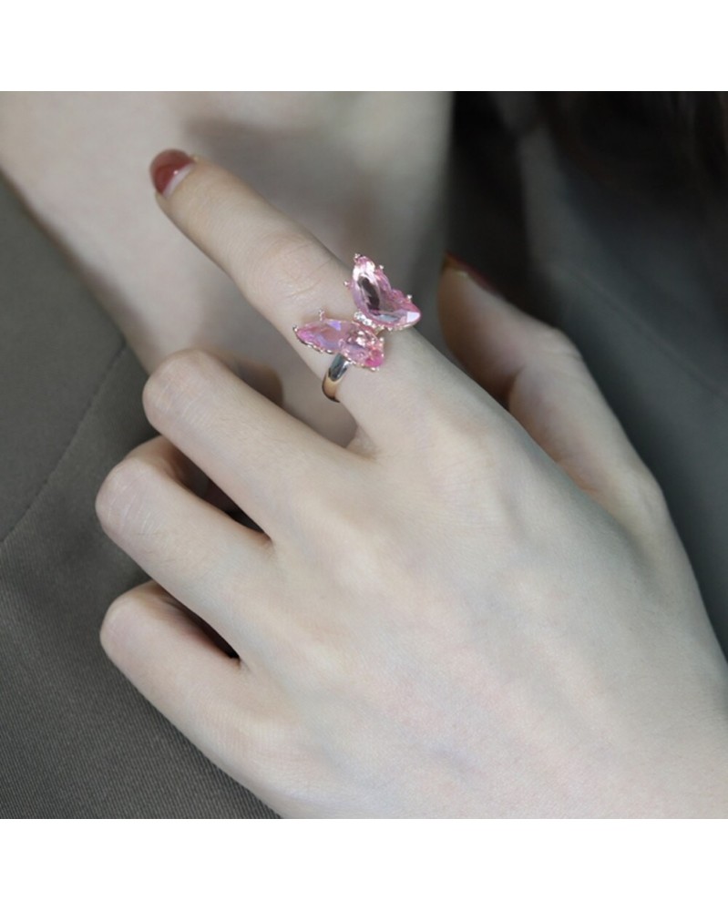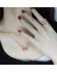 Fém színe: gyűrű - 2021 új pillangó gyűrű függő nyaklánc szett lila divatos édes kristály állítható fülbevaló