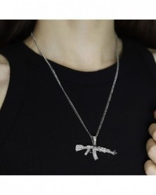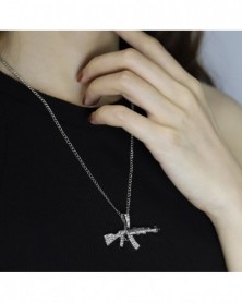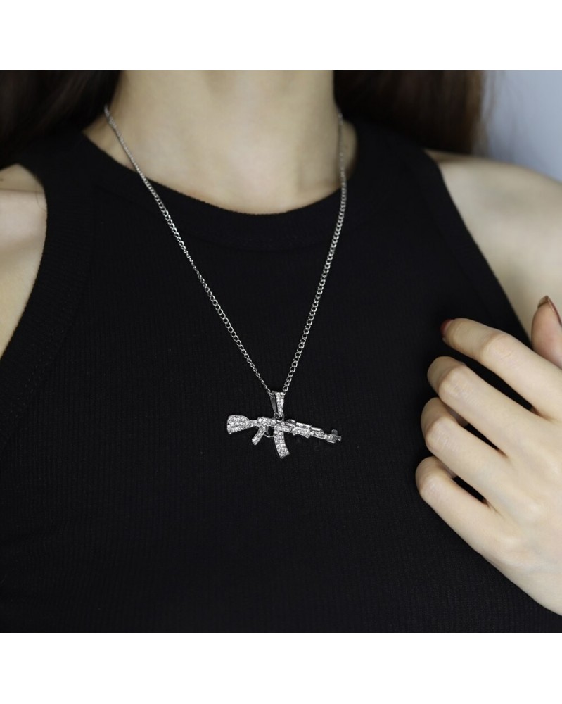Fém színe: MC068 - Divat Choker nyakláncok nőknek 2021 Pisztoly függő kristály strasszos lánc nyaklánc nők Férfi punk