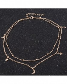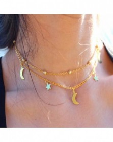 Fém színe: arany - Divat elegáns nők Lady Charm Hold csillag kerek medál kettős rétegű lánc Choker nyaklánc party