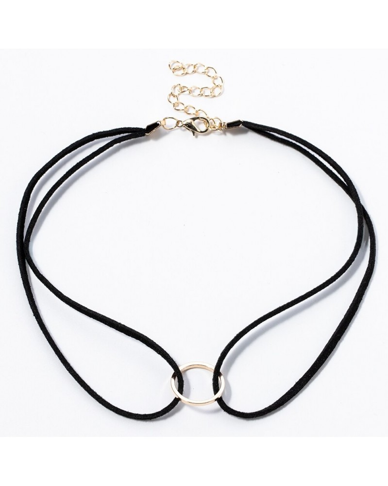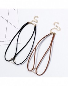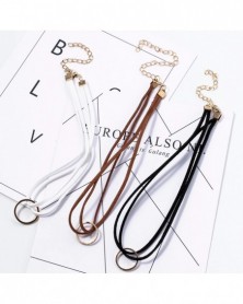 90'S Punk New Fashion Black White Brown Leather Choker Necklace Gold Plated Geometry With Round Pendant For Women Girls