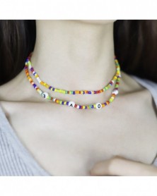 Fém színe: AI653 - Divat bohém kézzel készített barkács rizs gyöngy nyaklánc betű szerencsés szerelem angyal csukló