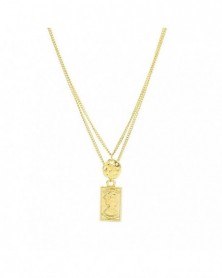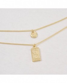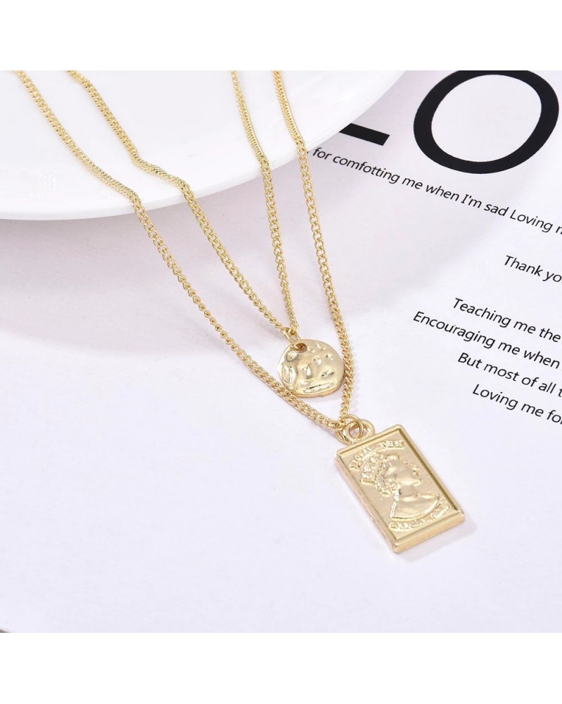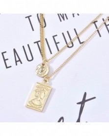 Fém színe: AQ841 - Retro négyzet alakú portré dombornyomott kettős rétegű nyaklánc nők kulcscsont lánc koreai fém