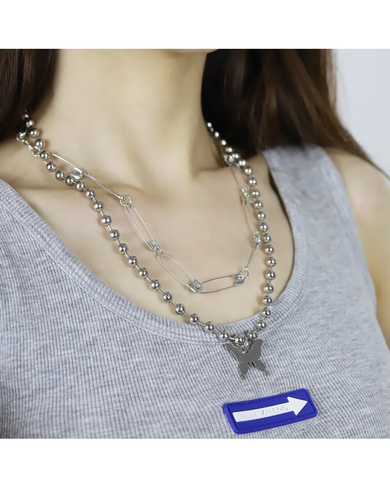 Fém színe: AQ860 - Vintage többrétegű érme lánc Choker nyaklánc nőknek Arany ezüst színű punk portré vaskos lánc