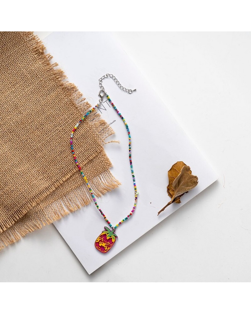Summer Cute Flower Fruit Love Heart Pendant Necklace Colorful Beads Acrylic Pearl Rice Bead Necklace Girl Bohemia Woman Jewelry