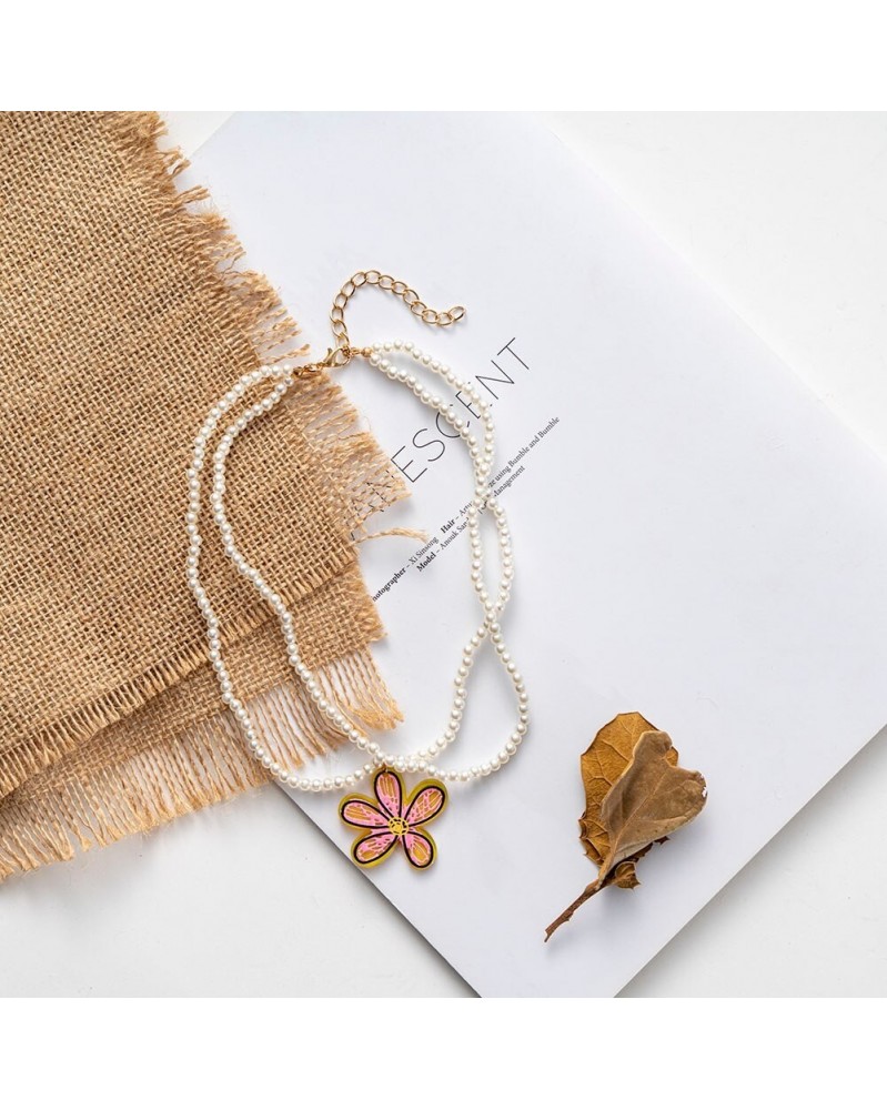 Summer Cute Flower Fruit Love Heart Pendant Necklace Colorful Beads Acrylic Pearl Rice Bead Necklace Girl Bohemia Woman Jewelry