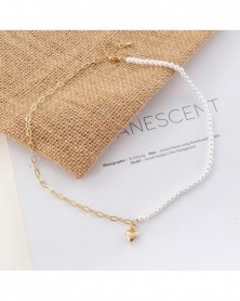 Fém színe: AU313 - Korea Pearl Love függő nyaklánc Egyszerű divatos aszimmetrikus kulcscsont lánc Punk Choker nyaklánc