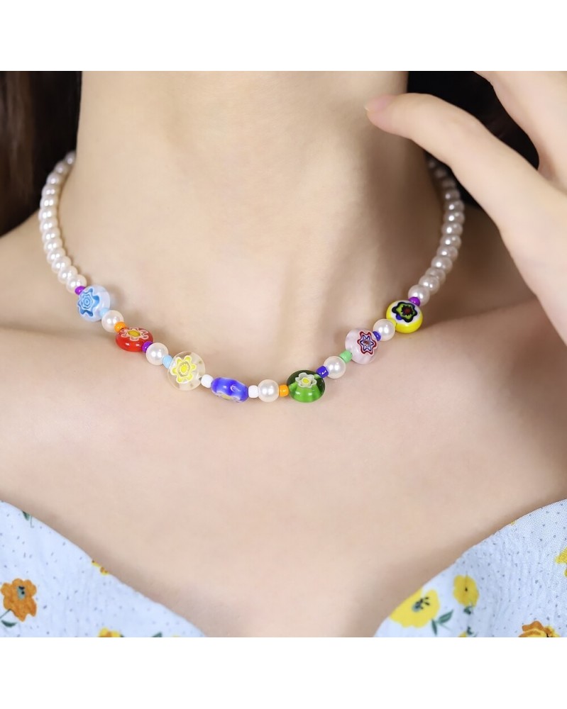 Fém színe: TD960 - Pearl Boho többszínű gyöngyös nyaklánc nőknek bohém jelmez fém lánc kézzel készített