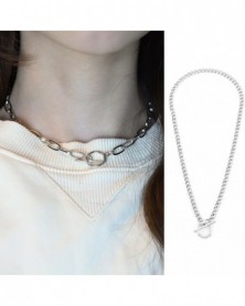 Fém színe: AN128 - Divatos arany kreatív OT csat csatolánc nyakláncok hip -hop ékszer medálok szív lánc nyaklánc szál