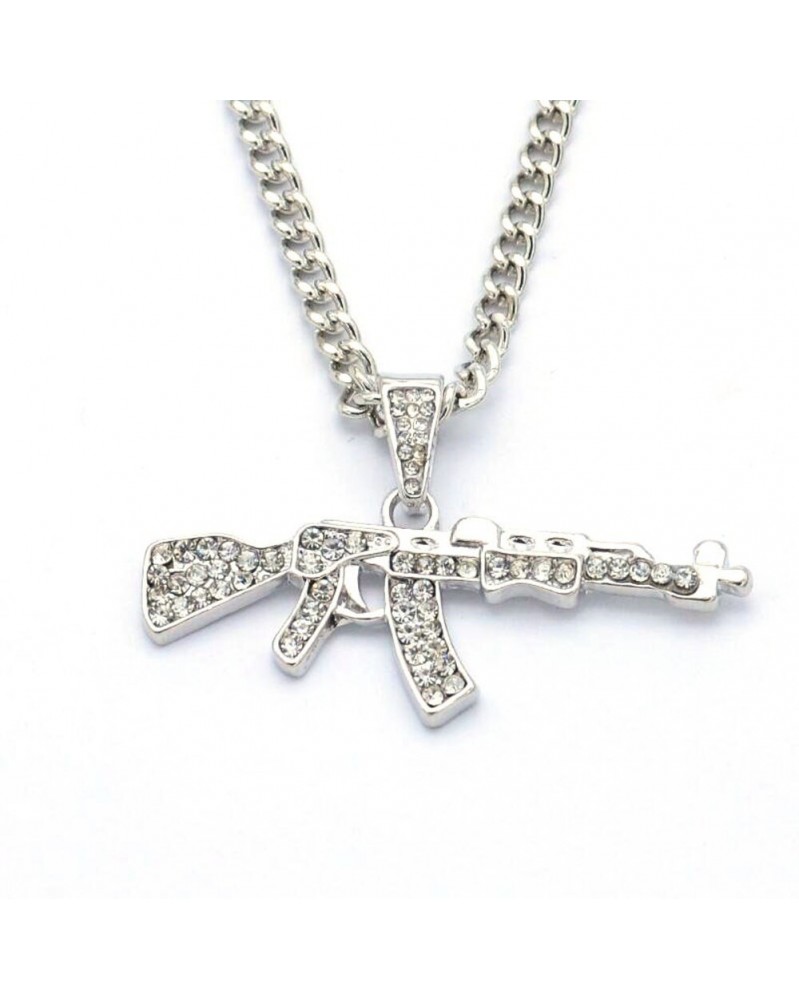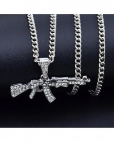 Fém színe: ezüst - SUMENG 2021 Új divat Choker nyakláncok Fegyver függő kristály strasszos lánc nyaklánc Punk láncok