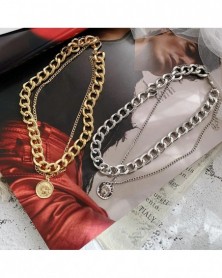 Fém színe: - SUMENG új divat Vintage többrétegű érme lánc nyaklánc nőknek arany ezüst színű portré vaskos lánc