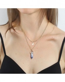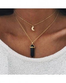 Fém színe: fekete-2 rétegű - Divat Bohemia 1 PCS természetes kő Hold Choker arany színű kristály függő nyaklánc