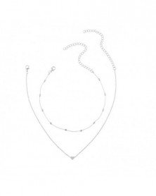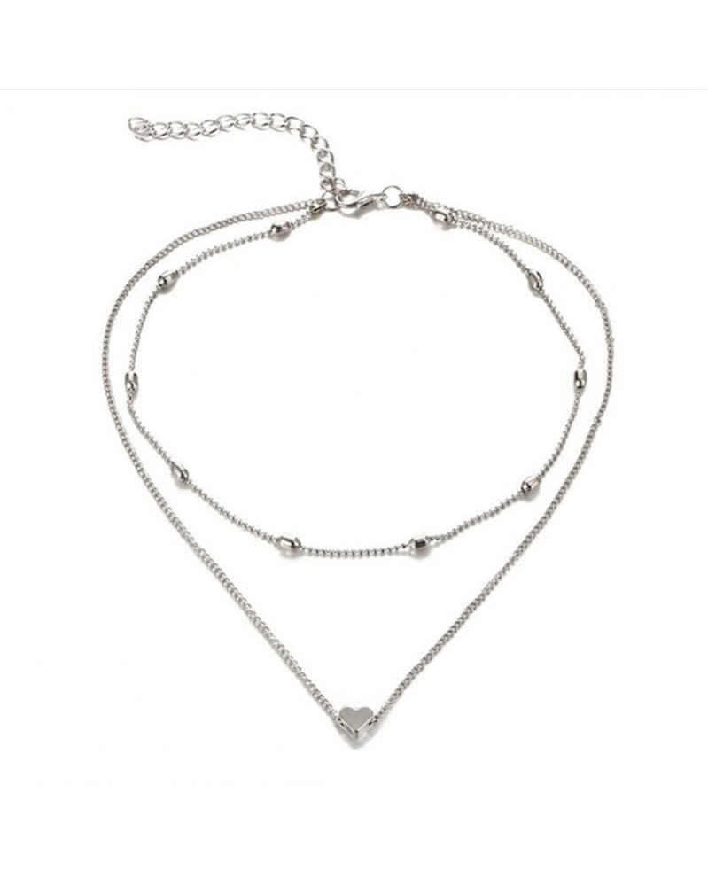 Fém színe: ezüst - 2021 Új Lovely Style 2 réteg Love Heart állítható nyaklánc többrétegű lánc Choker nyaklánc