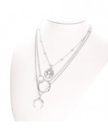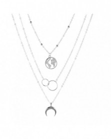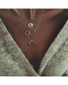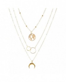 Fém színe: ezüst - Új divat Retro Hold Világtérkép Kör Medál Többrétegű Arany Colodr Nyaklánc Party Báj Ékszer