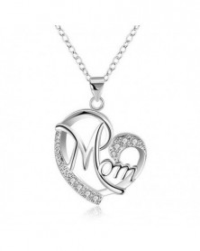 Fém színe: ezüst fekete - Új divat betű MOM szív alakú berakásos kristály függő nyaklánc Anyák napi ajándék