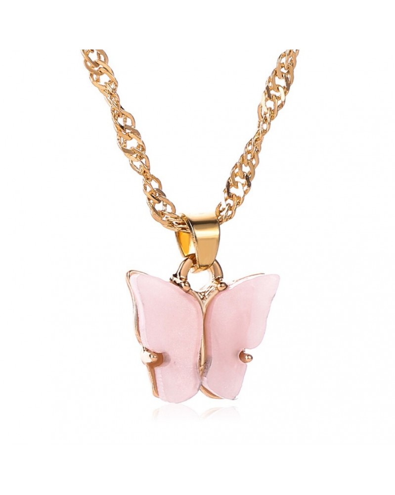 Fém színe: 5 rózsaszín - SUMENG új divat akril színű pillangó nyaklánc hosszú vad kulcscsont lánc medál nyaklánc
