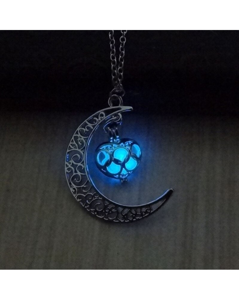 Fém színe: 2-kék - SUMENG divat nők ragyognak a sötétben medál nyakláncok ezüstözött lánc hosszú éjszakai hold