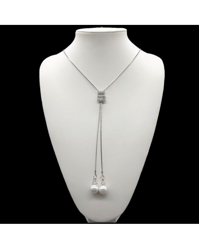 Fém színe: ezüst - ÚJ szimulált gyöngy kristály hosszú pulóver lánc körök nyaklánc Vintage kiegészítő kristály
